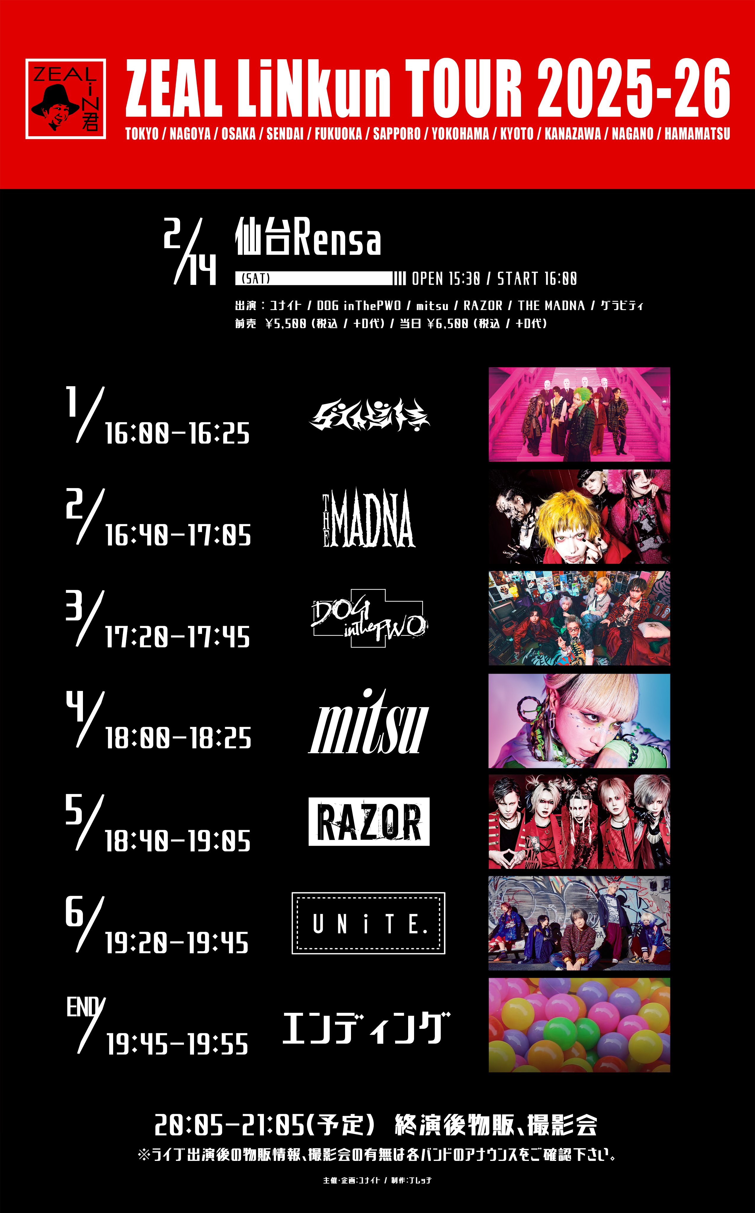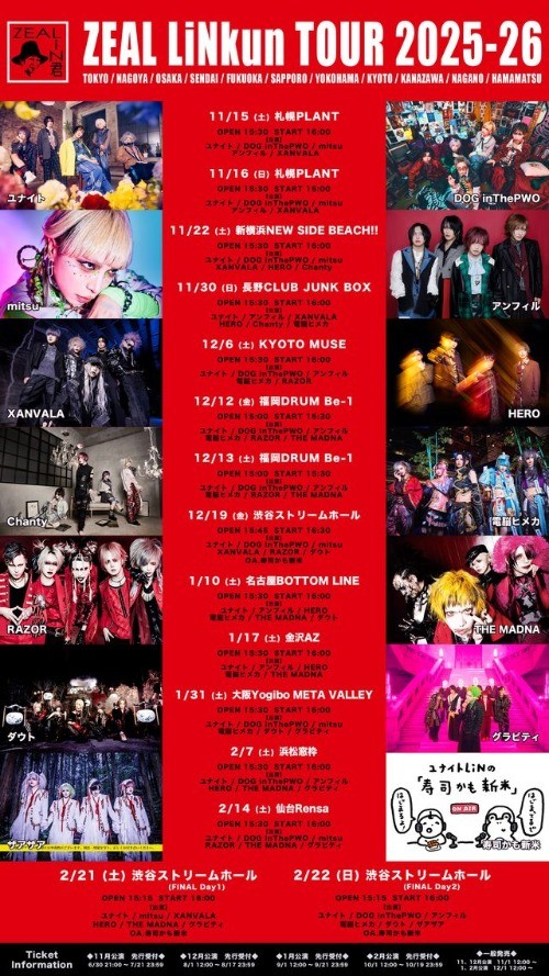 ZEAL LiNkun TOUR 2025-26出演:ユナイト / DOG inThePWO / mitsu / RAZOR / THE MADNA / グラビティ